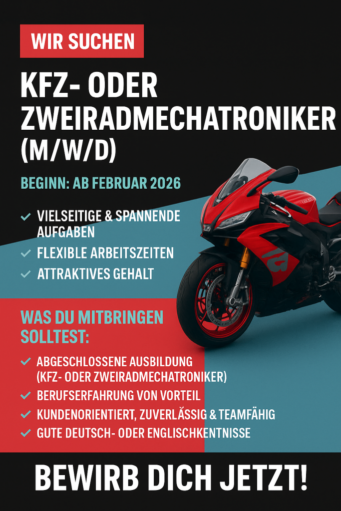 Du liebst Bikes, hast Benzin im Blut und suchst einen Job, bei dem du mehr machst als nur Teile wechseln? Dann bist du bei uns genau richtig!